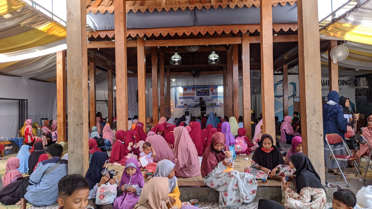 Sinar matahari yang menyengat tak mengurangi keceriaan yang nampak dari raut wajah para santri yang polos. Ada yang tengah khusyuk mendengarkan kisah dongeng islami yang dibawakan oleh Kak Amir, ada yang asyik menikmati aneka cemilan yang dijajakan para peserta bazar, ada pula yang tengah asyik membaca buku yang disediakan oleh Pusling (Perpustakaan Keliling) dari LKGTPQ (Lembaga Koordinasi Gerakan Taman Pendidikan Al-Quran).