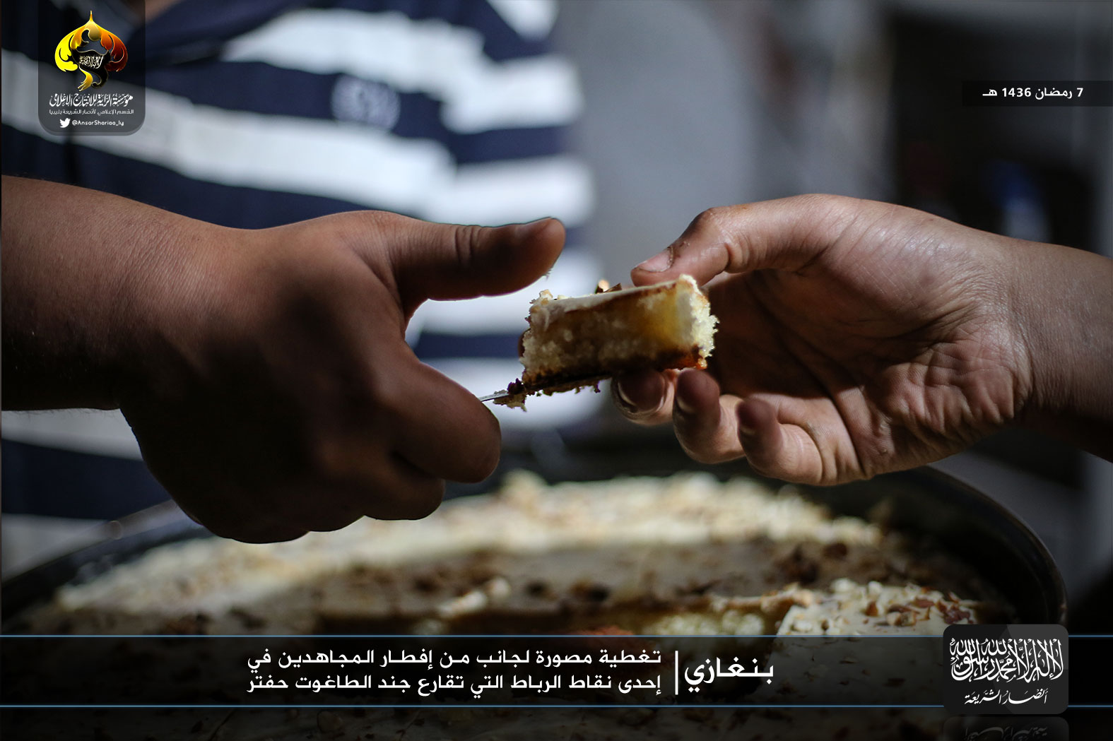 Pada hari ke-7 romadhon, mujahidin Anshar Syari’ah Libya lewat Muassasah Al Rayah Lil Intaj Al ‘Ilmiy mempublikasikan “foto-foto ifthar (buka puasa) mujahidin di salah satu titik ribath melawan tentara thagut haftar”.