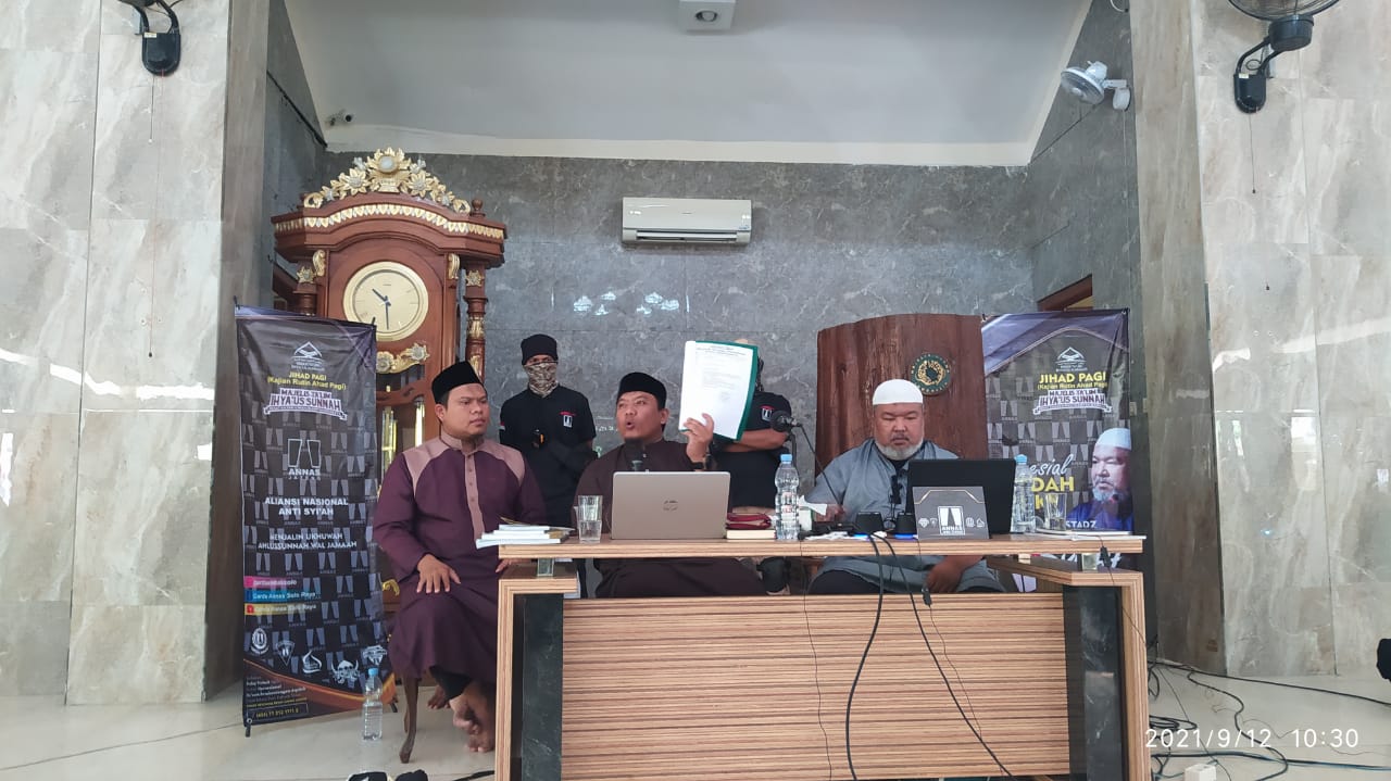 SOLO (Panjimas.com) – Sebelum acara bedah buku yang diselenggarakan ANNAS (Aliansi Nasional Anti Syi’ah) di Masjid MUI Surakarta, Ahad (12/9/2021), ustadz Tengku Al Azhar (Ketua ANNAS Jateng) di hadapan hadirin mengungkapkan temuannya terkait buku ‘Al-Ustadz KH. Mudzakir & Tuduhan Syiah’ yang mencatut nama Komisi Ukhuwah MUI Surakarta tersebut.