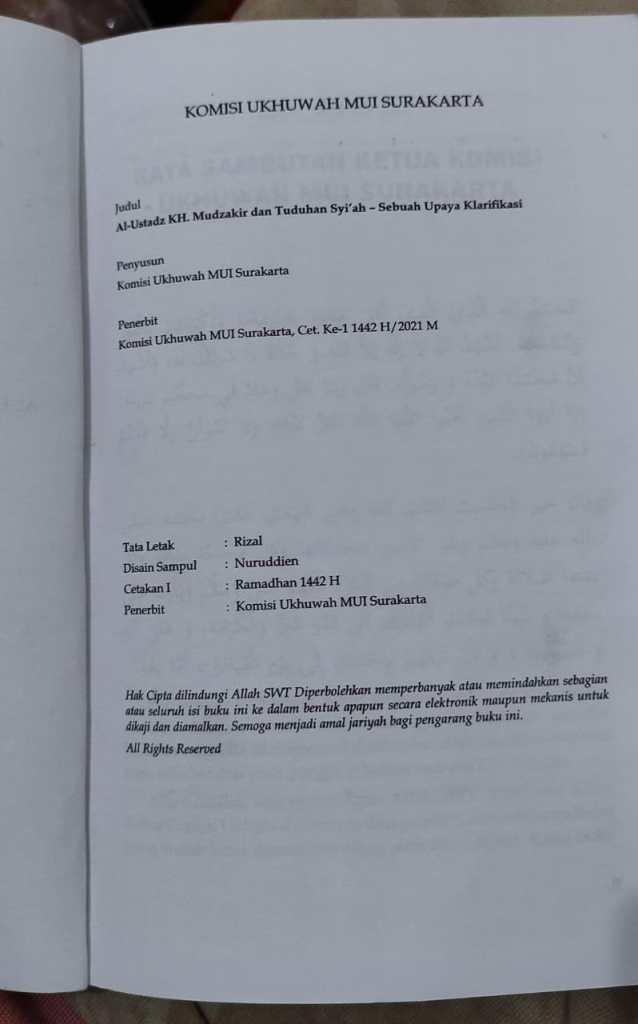 Buku tersebut diterbitkan oleh Komisi Ukhuwah MUI Surakarta ke-1 1442 H atau pada tahun 2021. Sedangkan Pengurus MUI Kota Surakarta pada peridode 2017-2022 dilantik di Pendape Gedhe Balai Kota Surakarta, Kamis, (8/2/2018). KH. Drs. Subari sendiri dikukuhkan sebagai Ketua MUI Surakarta hingga tahun 2022 mendatang.