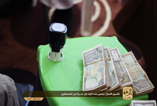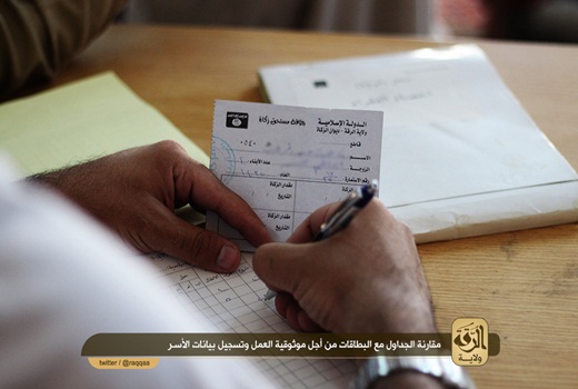 Inilah Daulah Islamiyyah menanggung beban tugas ini melalui kantor zakat, mengumpulkan dan mendistribusikan zakat kepada 8 golongan yang berhak menerimanya yang tinggal di wilayah-wilayahnya, berkoordinasi dengan pengurus masjid dan badan wakaf, dibawah pengawasan majlis syariah si wilayah Raqqa, dimana para imam masjid mencatat nama-nama keluarga yang membutuhkan dan menertibkannya sesuai kondisi ekonminya, lalu menyerahkannya kepada pengurus di kantor zakat, dan kemudian mereka langsung berkeliling ke masjid-masjid untuk distribusi.